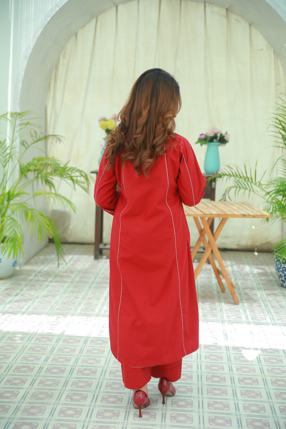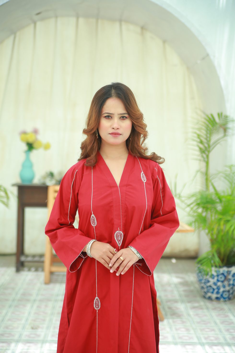 Decorated with vertical embroidered motifs in white, giving it a sleek and traditional touch.